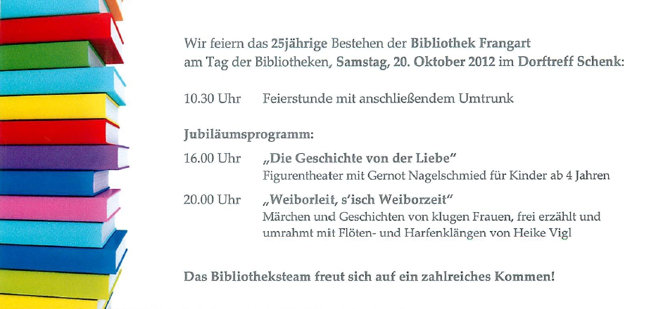 Information: Öffentliche Bibliothek Frangart Kontaktperson: Irene Demetz |